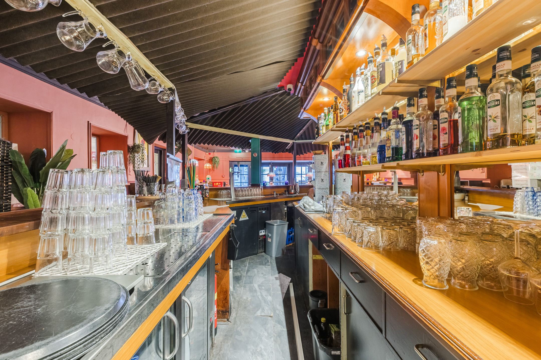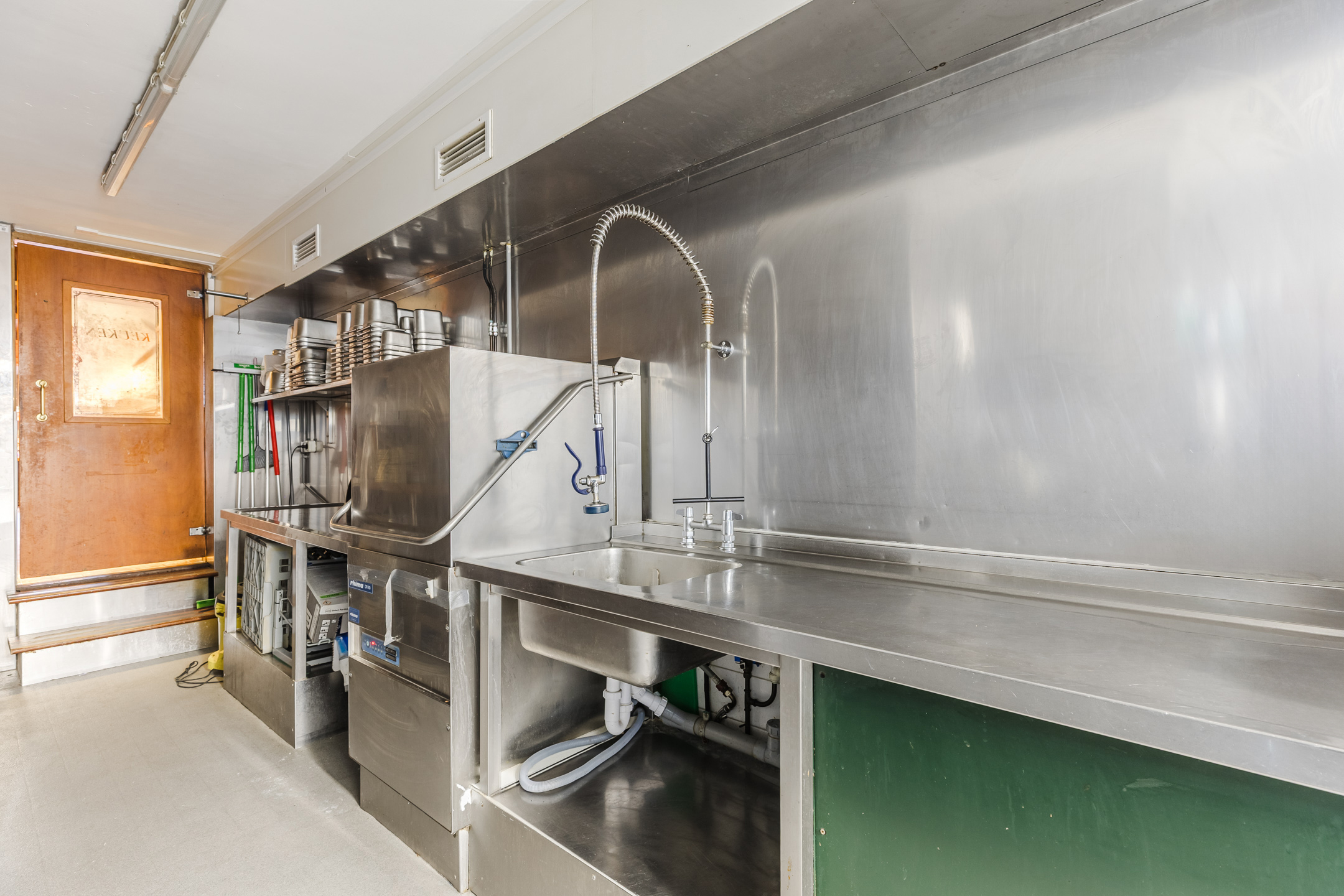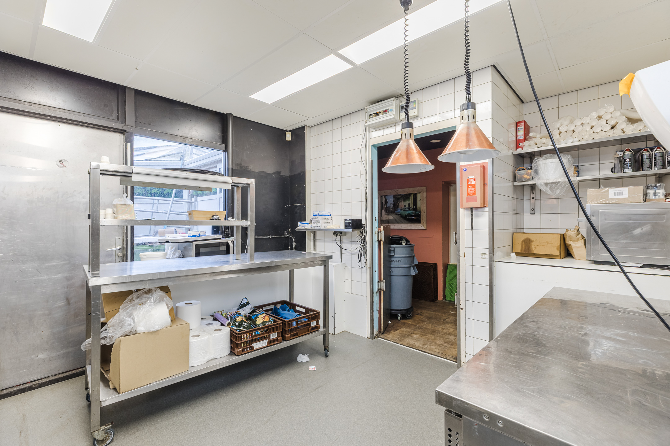 In het midden van het pand bevinden de Keuken, koelcel, evenals sanitaire voorzieningen en een pantry. Hiermee is het pand volledig ingericht voor gebruik als horeca en instapklaar. De indeling biedt flexibiliteit; wanden en ruimten kunnen desgewenst worden aangepast om aan specifieke wensen te voldoen.