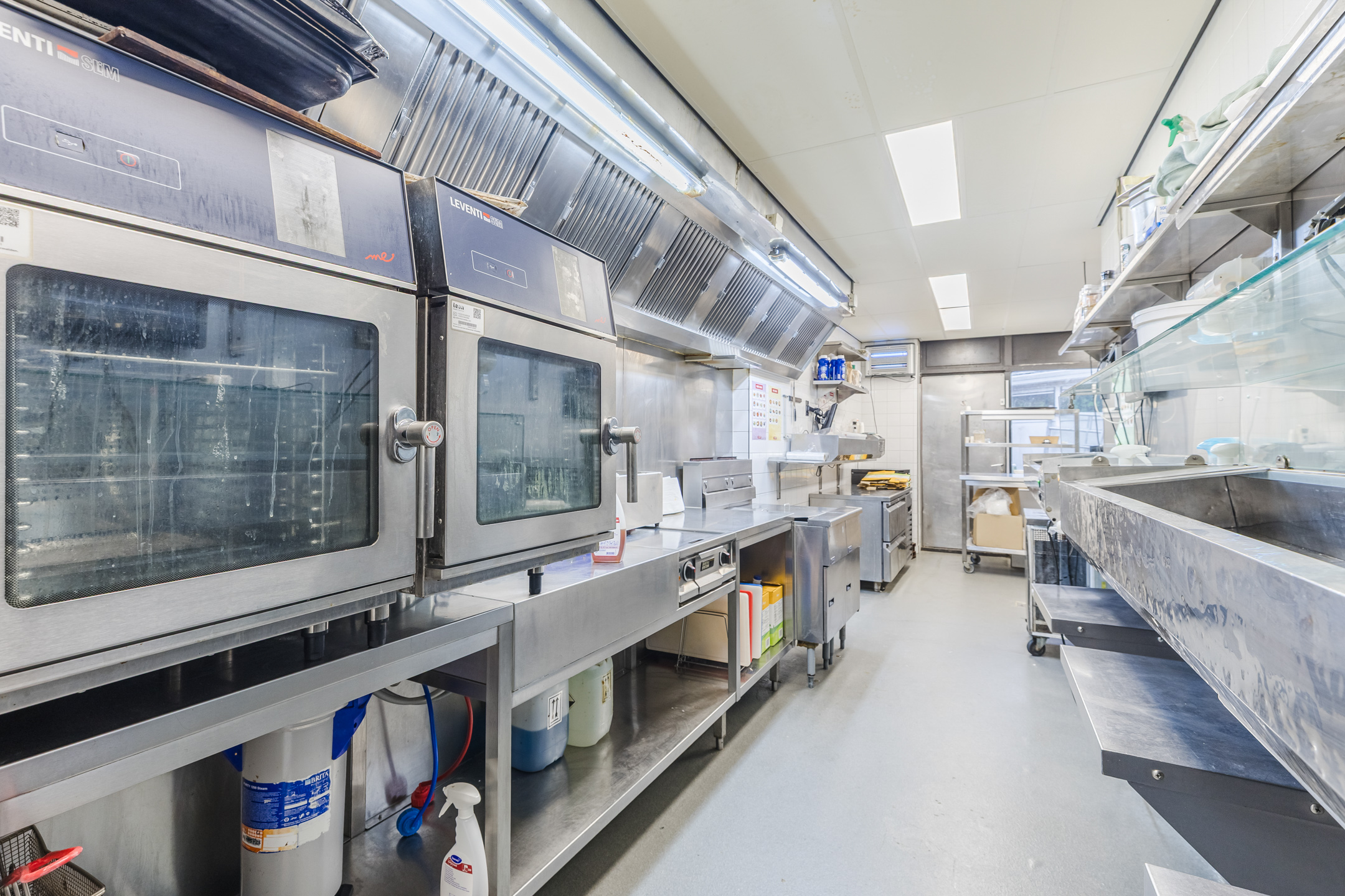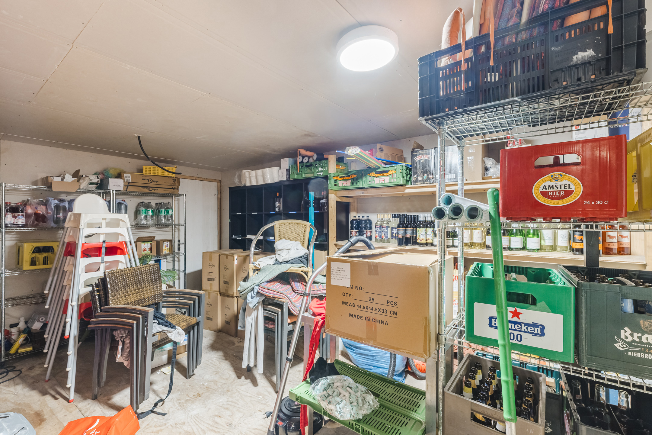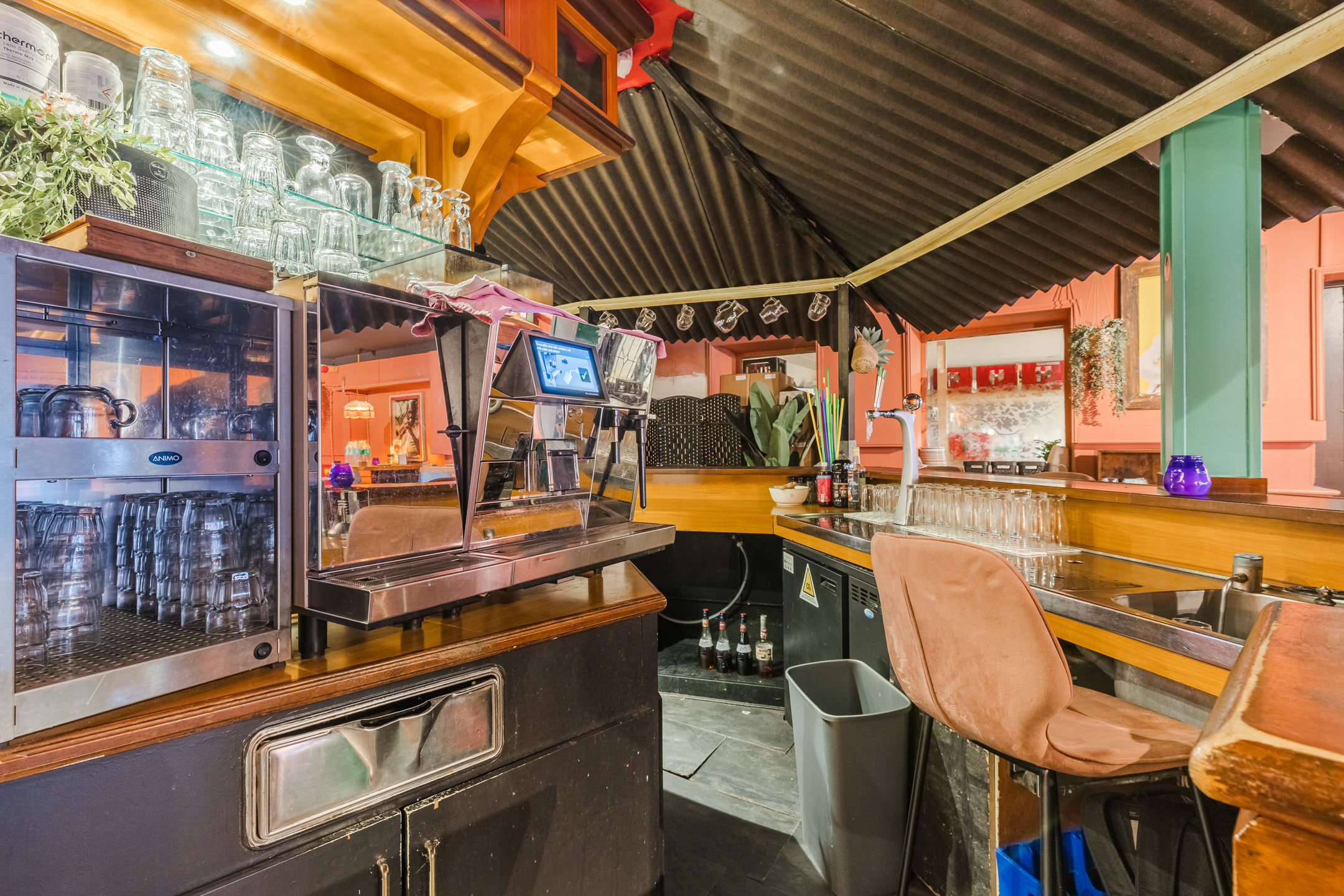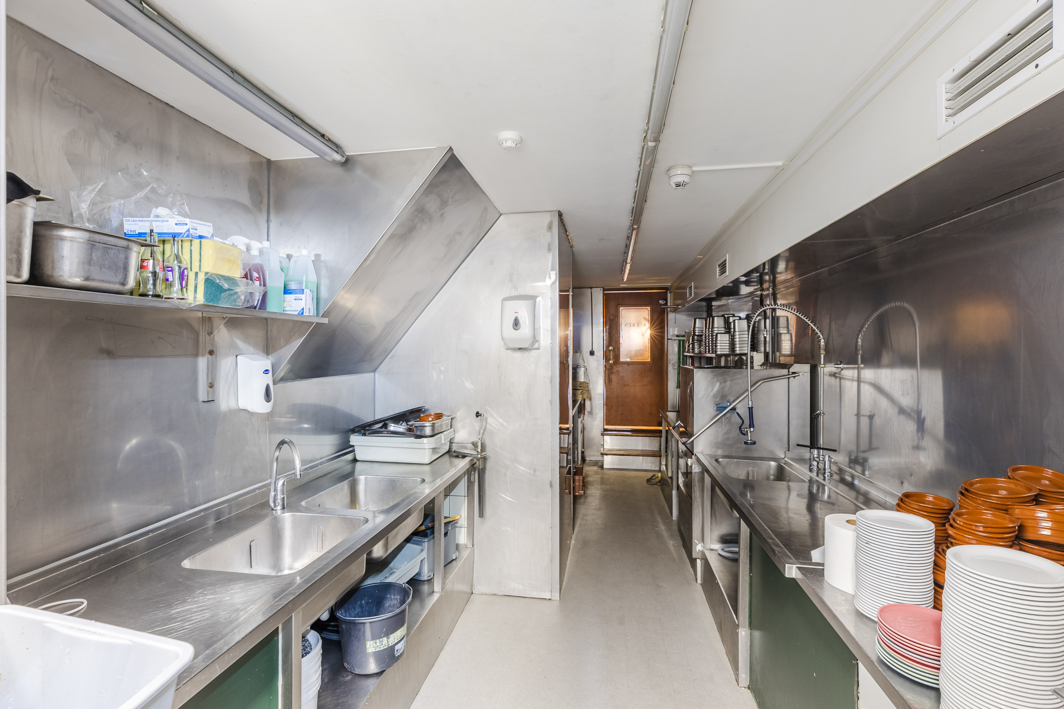 In het midden van het pand bevinden de Keuken, koelcel, evenals sanitaire voorzieningen en een pantry. Hiermee is het pand volledig ingericht voor gebruik als horeca en instapklaar. De indeling biedt flexibiliteit; wanden en ruimten kunnen desgewenst worden aangepast om aan specifieke wensen te voldoen.