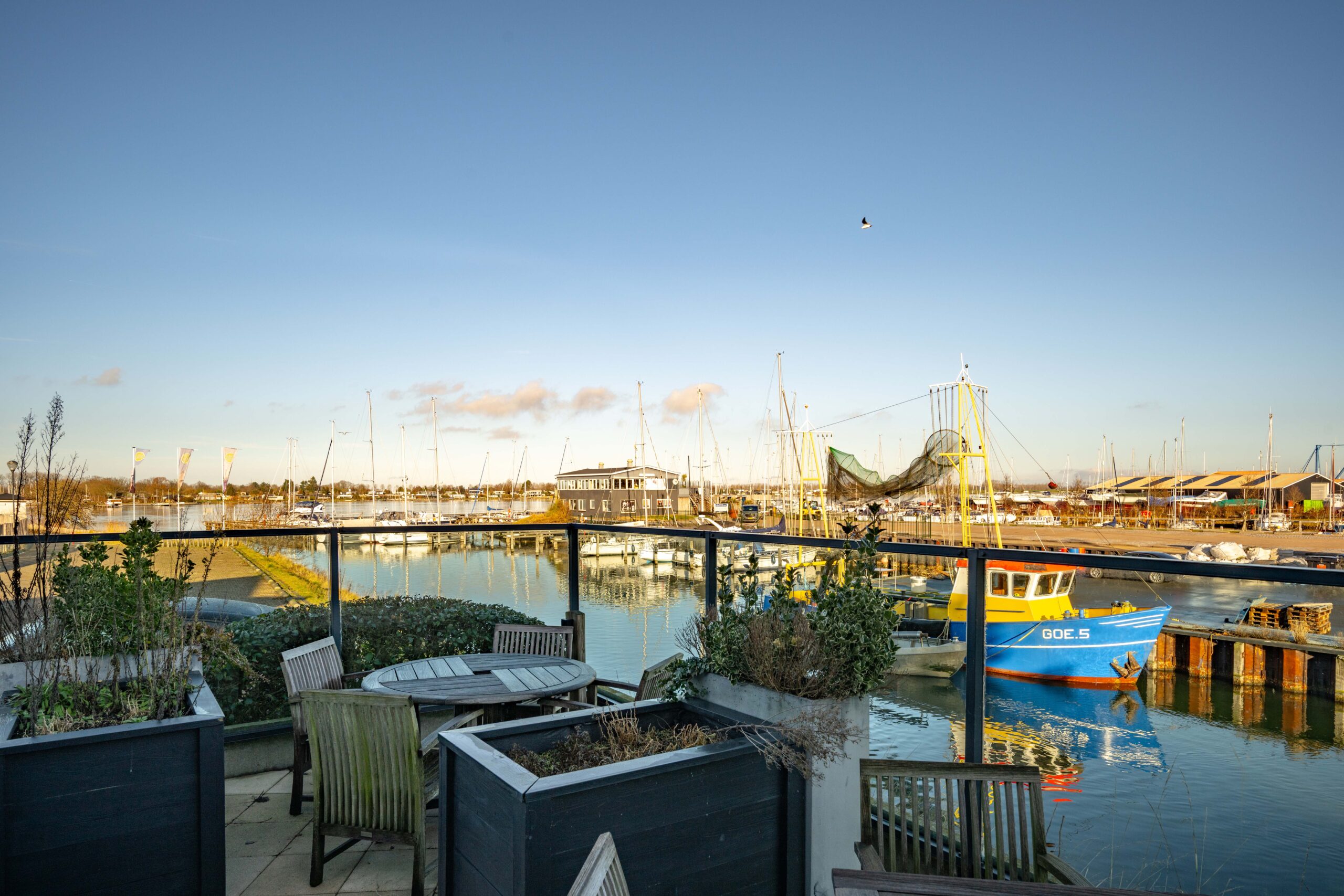 De haven van Wolphaartsdijk is de perfecte plek voor een horecagelegenheid, zoals Den Baas en zijn Madam. Omringd door water, biedt het een prachtig uitzicht over het Veerse Meer. Dagelijks passeren hier leden van de watersportvereniging, watersportliefhebbers, toeristen en lokale gasten. Dit restaurant met terras én brouwerij vind je pal op de haven van Wolphaartsdijk. Genieten op het royale terras met prachtig uitzicht.