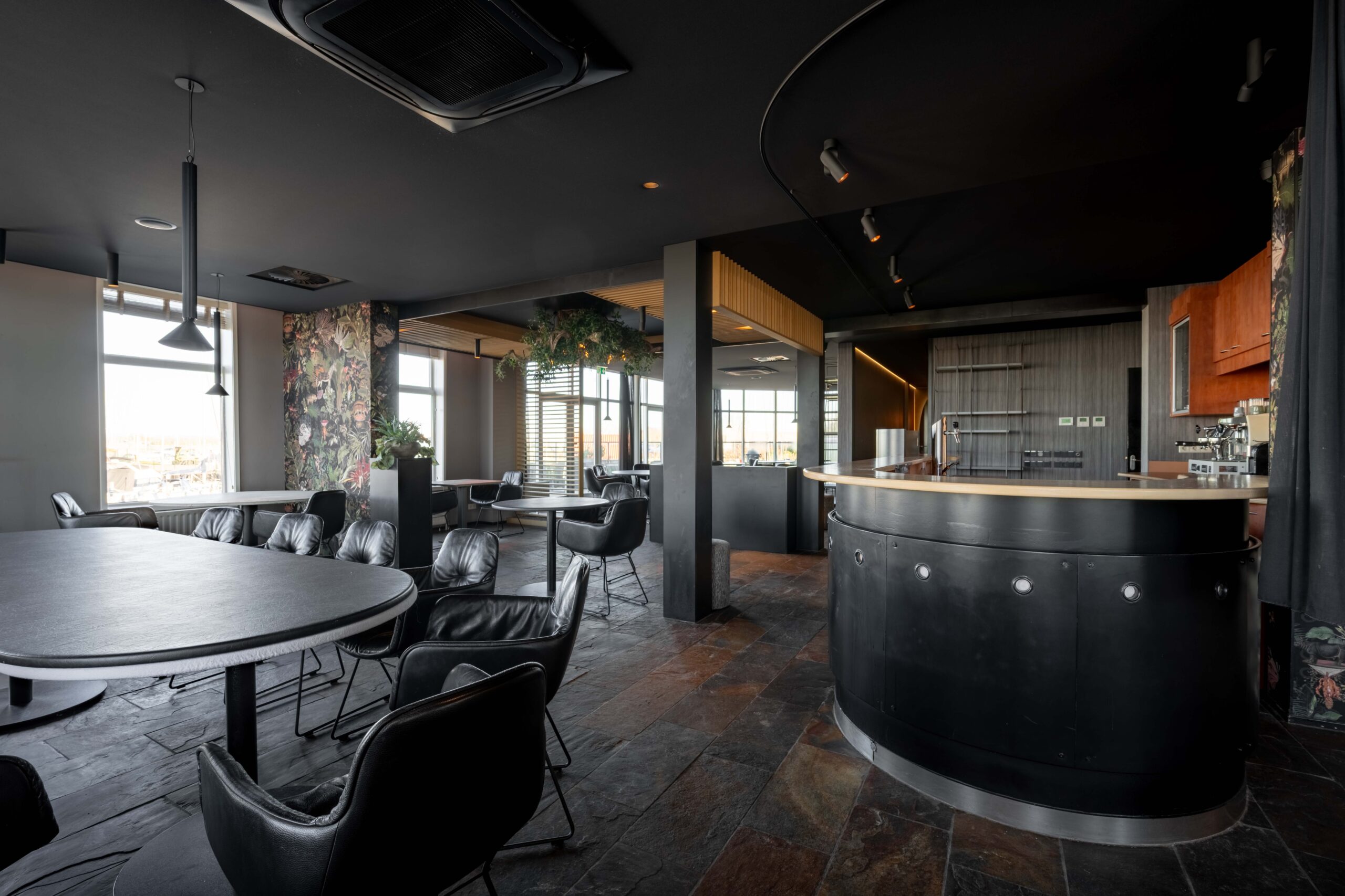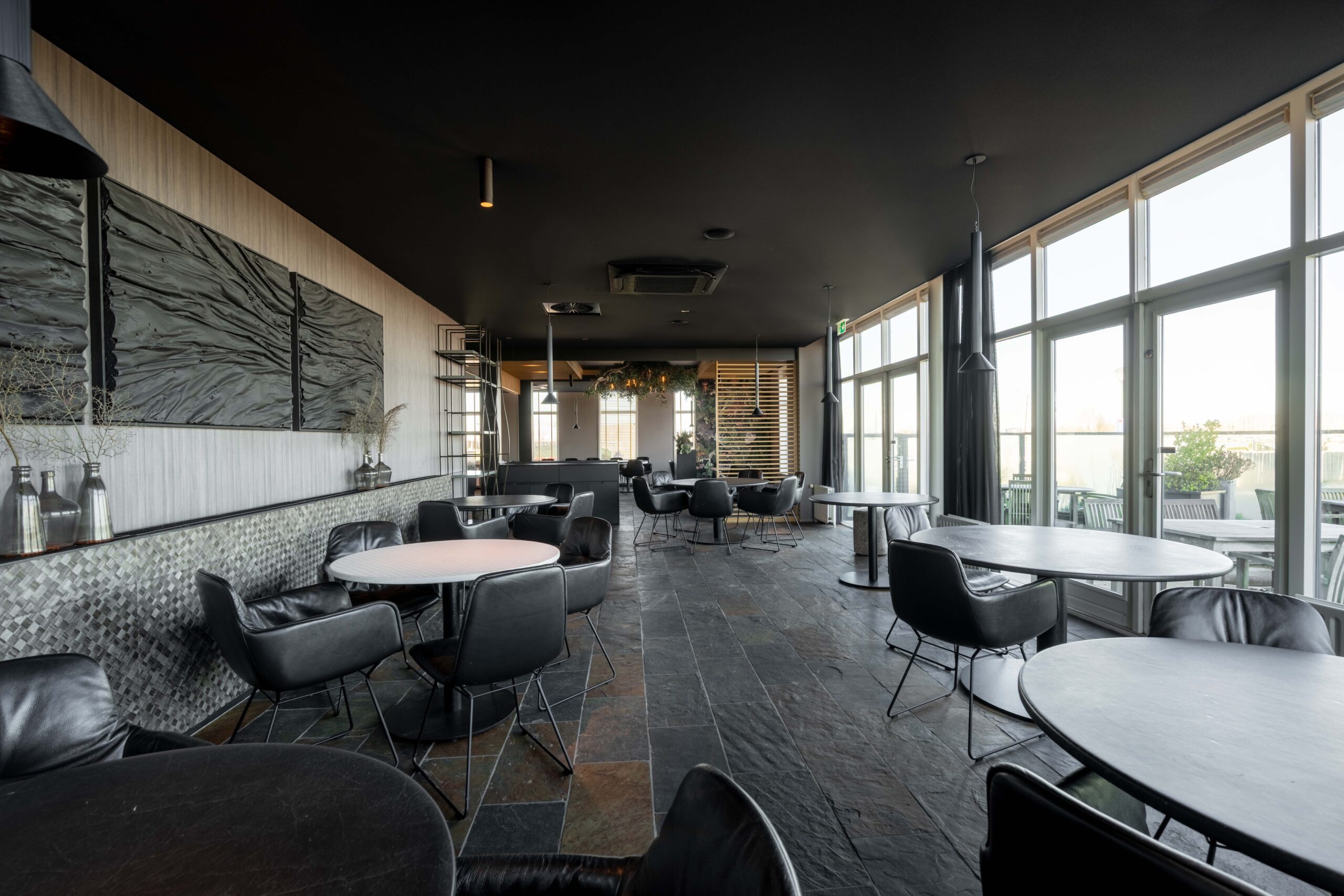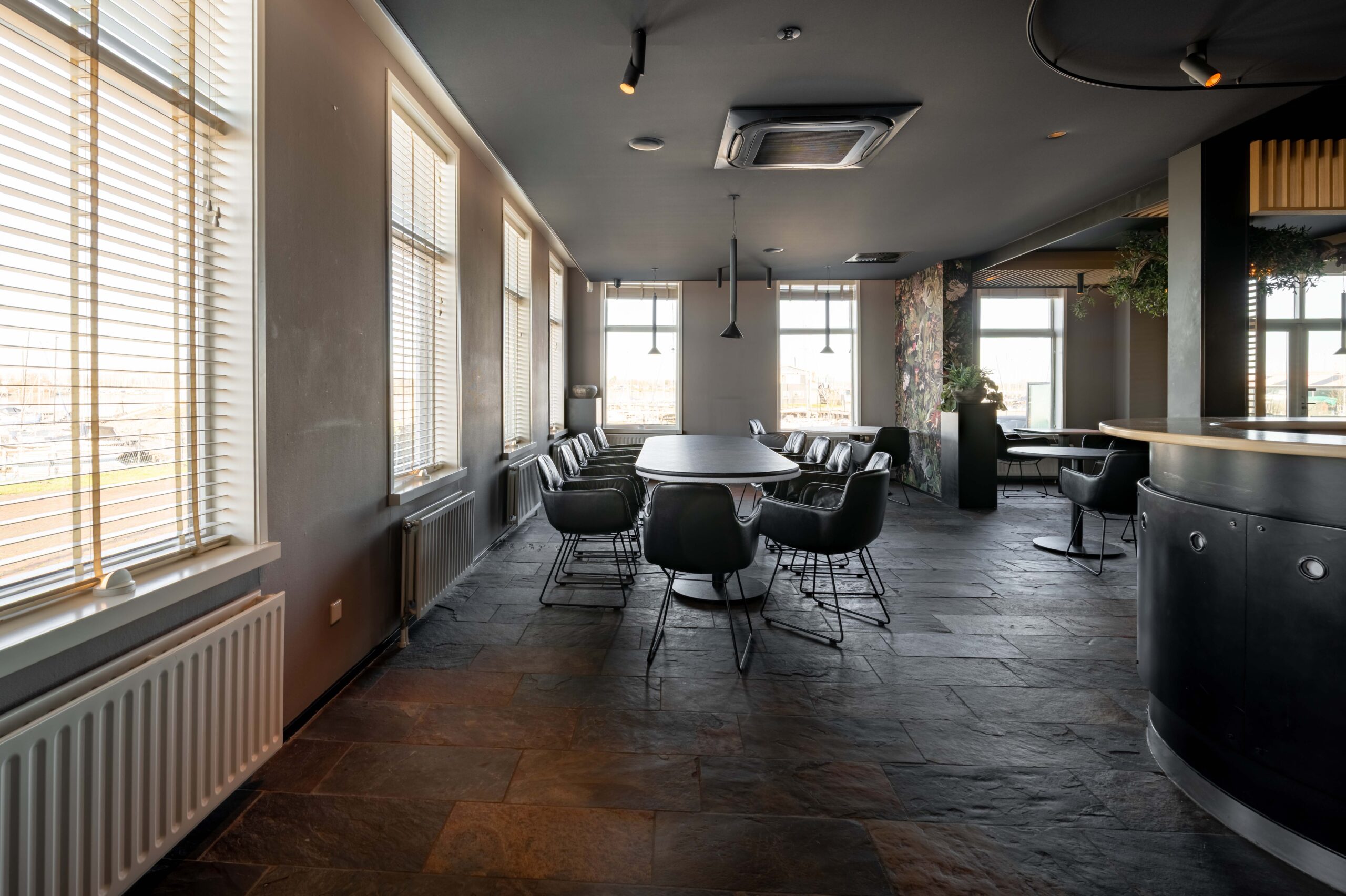 Het restaurant beschikt over eigen parkeerruimte voor de deur en twee terrassen, zodat gasten zowel binnen als buiten optimaal van hun bezoek kunnen genieten. Aan de voorzijde is een klein, sfeervol terras ideaal voor een kop koffie of een aperitief, met onder andere uitzicht op de aanlegsteiger van het pontje Wolphaartsdijk–Kortgene. Aan de achterzijde ligt een royale buitenruimte met voldoende plek voor tafels en stoelen, waar je gasten op een ontspannen manier kunt ontvangen. Binnen valt direct de fraaie, open keuken aan de rechterzijde op, geschikt voor elk horecaconcept. Door het gebruik van hout heeft deze keuken een warme en uitnodigende uitstraling. Links bij binnenkomst bevindt zich het restaurantgedeelte, met grote raampartijen die zorgen voor veel natuurlijk licht en een prachtig uitzicht over het water; een decor dat elk seizoen verandert. De toiletgroep voor gasten is stijlvol vormgegeven. In het pand vind je verder een kantoorruimte, koel/vriescombinatie en een wijnkelder.