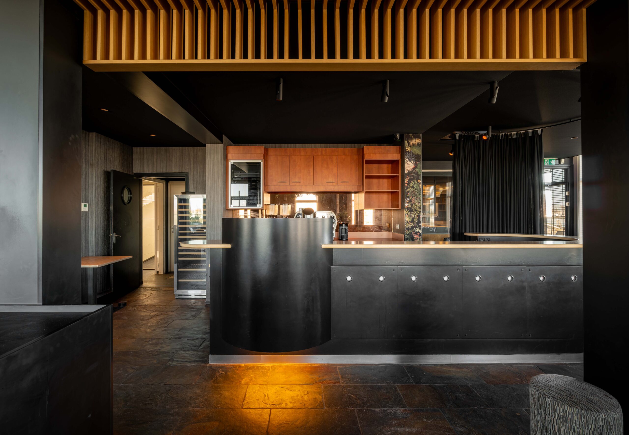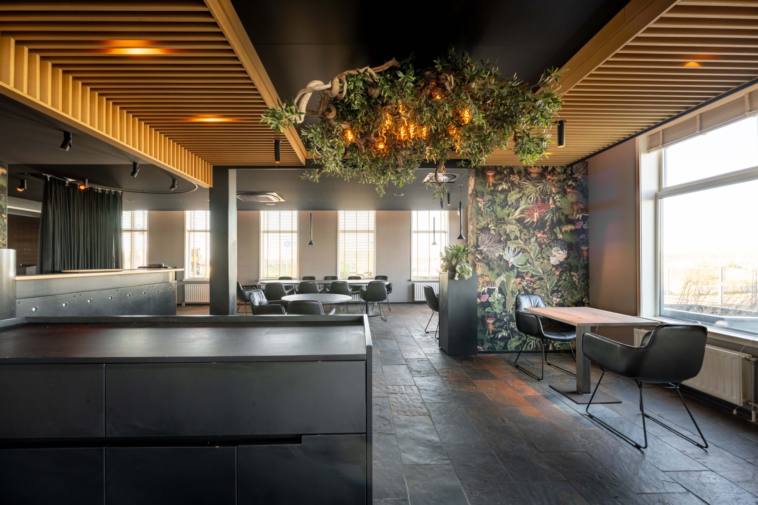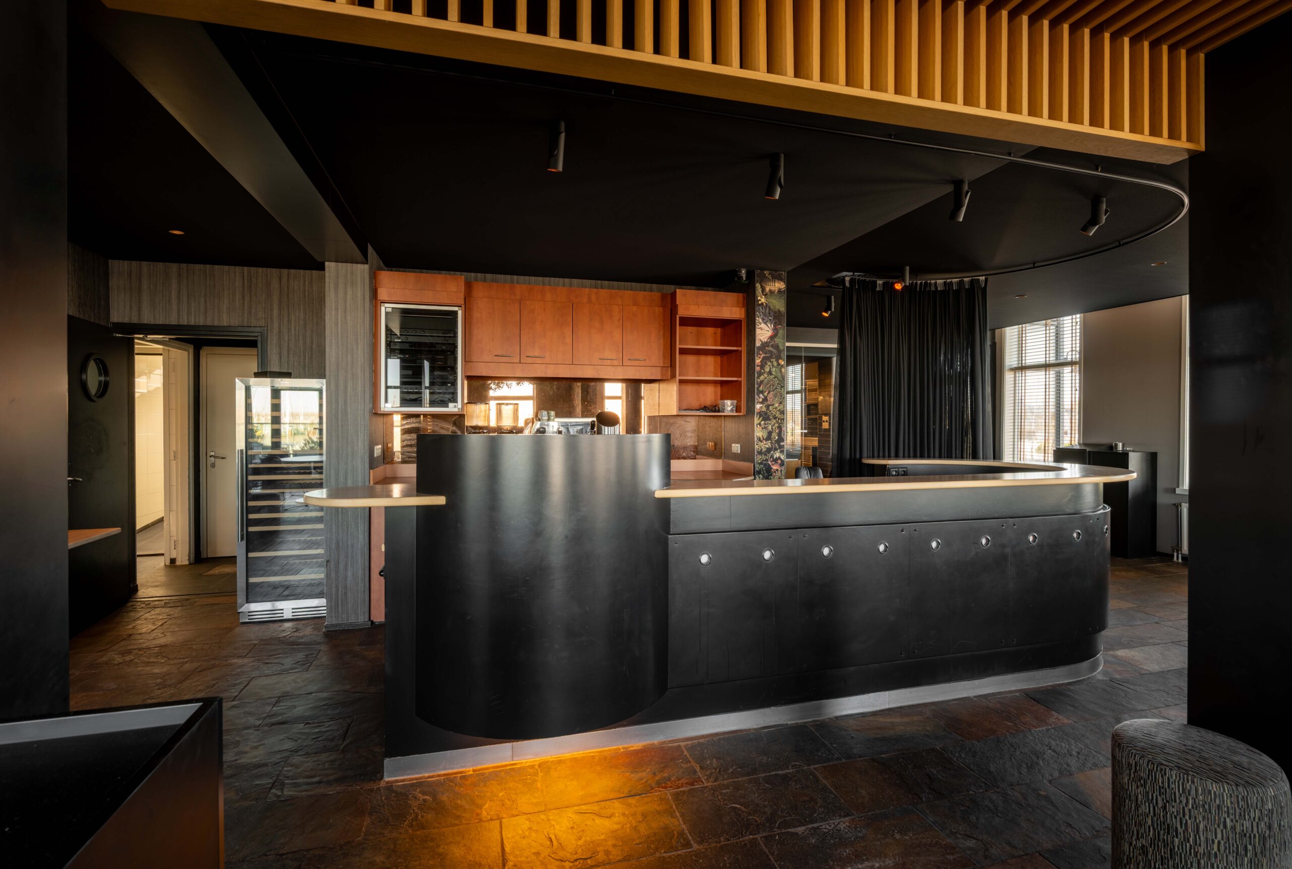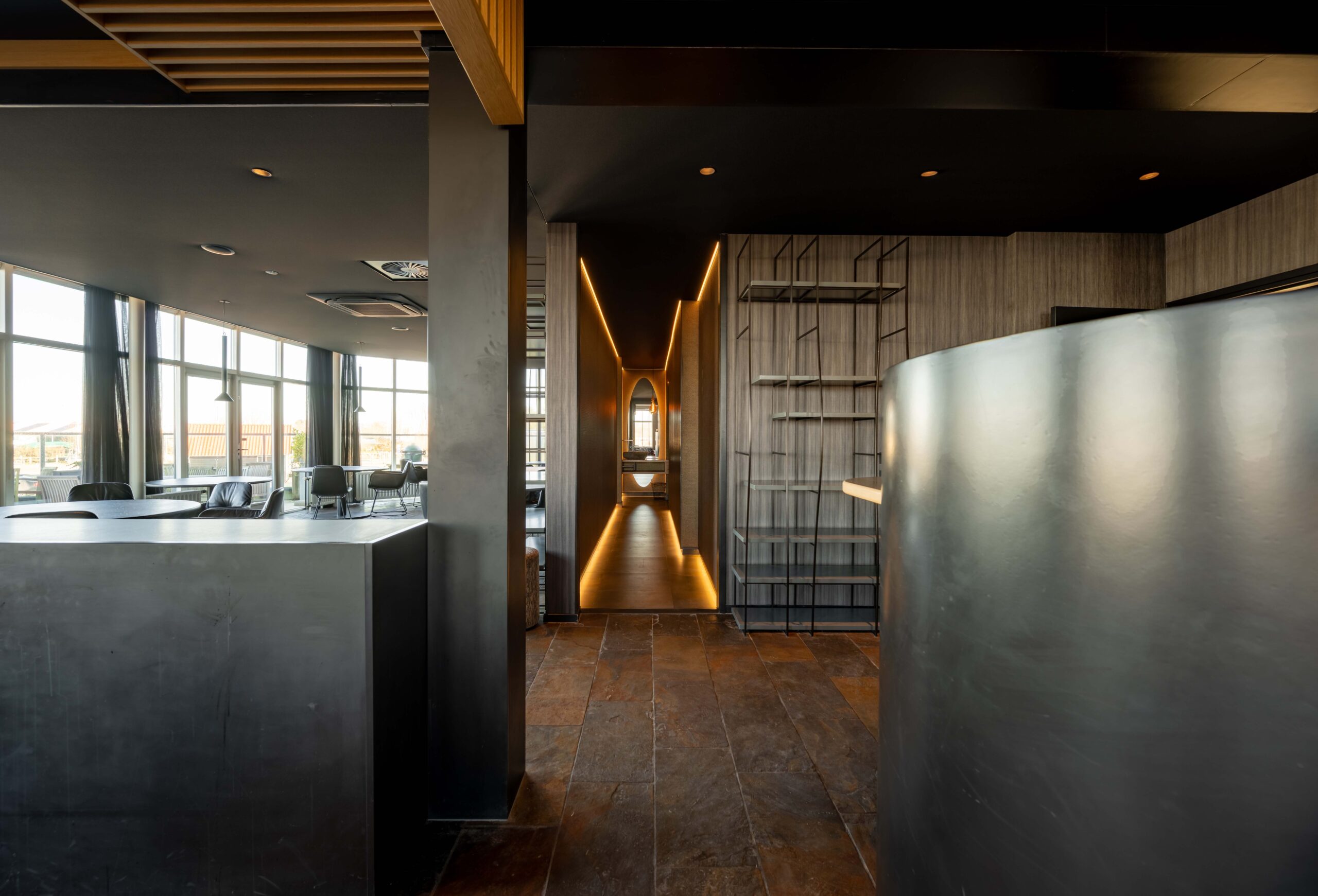 Het restaurant beschikt over eigen parkeerruimte voor de deur en twee terrassen, zodat gasten zowel binnen als buiten optimaal van hun bezoek kunnen genieten. Aan de voorzijde is een klein, sfeervol terras ideaal voor een kop koffie of een aperitief, met onder andere uitzicht op de aanlegsteiger van het pontje Wolphaartsdijk–Kortgene. Aan de achterzijde ligt een royale buitenruimte met voldoende plek voor tafels en stoelen, waar je gasten op een ontspannen manier kunt ontvangen. Binnen valt direct de fraaie, open keuken aan de rechterzijde op, geschikt voor elk horecaconcept. Door het gebruik van hout heeft deze keuken een warme en uitnodigende uitstraling. Links bij binnenkomst bevindt zich het restaurantgedeelte, met grote raampartijen die zorgen voor veel natuurlijk licht en een prachtig uitzicht over het water; een decor dat elk seizoen verandert. De toiletgroep voor gasten is stijlvol vormgegeven. In het pand vind je verder een kantoorruimte, koel/vriescombinatie en een wijnkelder.